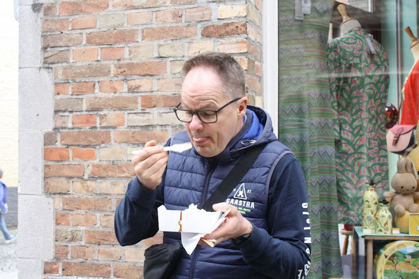 Wir sind mit dem Rad in die Innenstadt gerfahren. Die Altstadt ist wirklich wunderschön. Neben den vielen Sehenswürdigkeiten mussten wir natürlich auch alles probieren, was typisch belgisch ist: Pralinen, Waffeln, Bier. Pommes gingen dann leider nicht mehr rein...