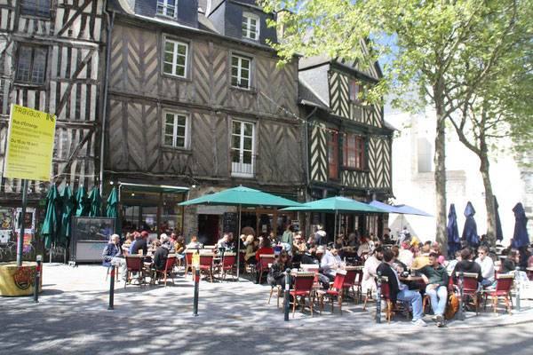 Heute sind wir ganz gemütlich ins Stadtzentrum geradelt und haben uns Rennes angesehen. Rennes ist eine Studentenstadt. Es gibt viele Bars, Kneipen und Straßencafes, die zum Verweilen einladen. Auch wir haben es uns gut gehen lassen. Und Matthes ist auch der Empfehlung von Gwen gefolgt in seiner Heimatstadt unbedingt einen "Kouign Amann" zu probieren. Das ist ein für die Bretagne typischer Kuchen. (Grüße an Gwen von Matthes: Tres bien!!!) Natürlich sind wir auch ein wenig durch die Läden gebummelt. Zum Abschluss gab es dann im Biergarten "Parc des Bois" noch einen Stopp und wir haben bei einem Glas Wein/Bier die Abendsonne genossen. Ein schöner Tag!