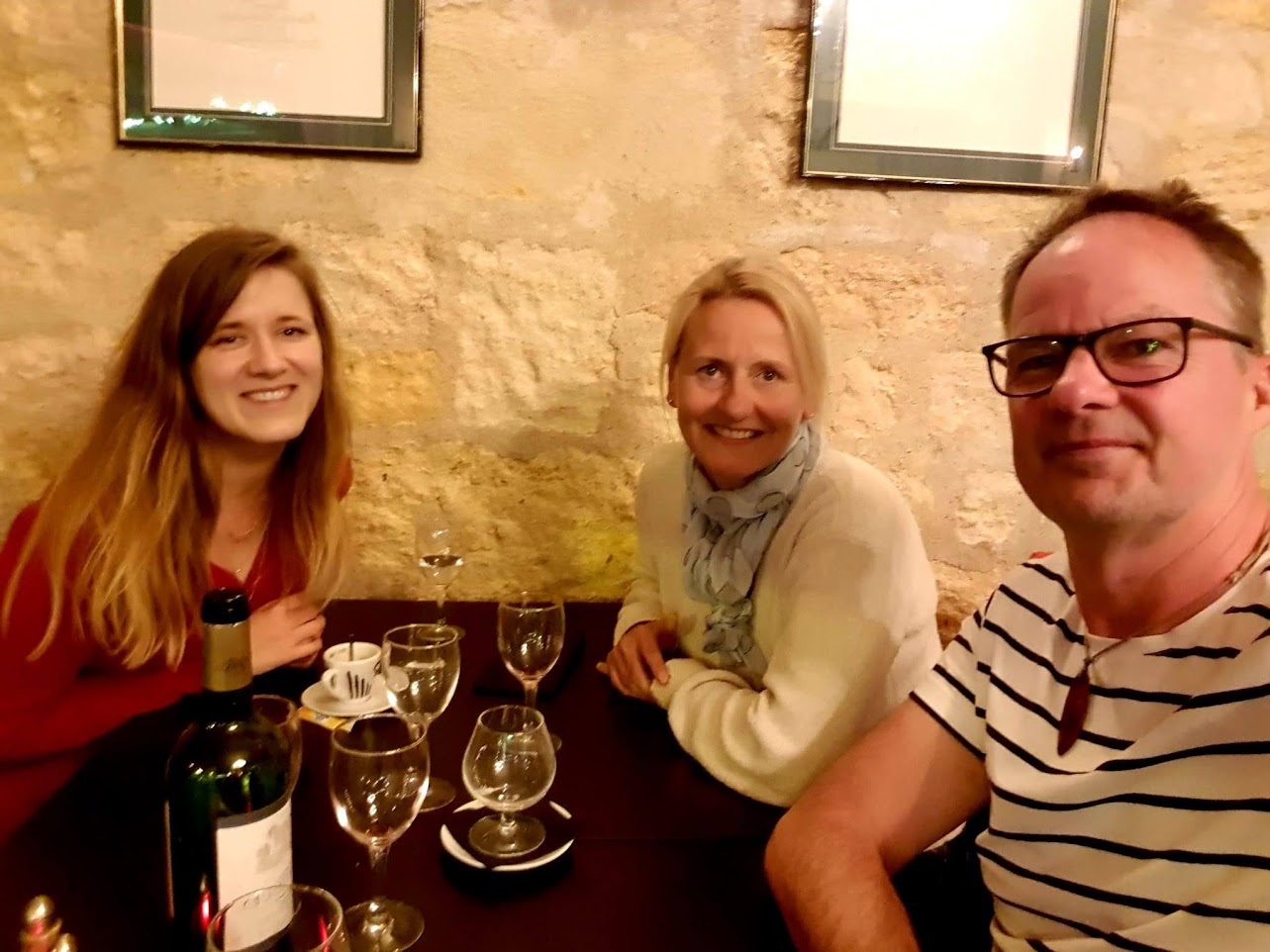 Gestern stand dann das Highlight unseres Bordeaux-Besuchs auf dem Plan: Ein Treffen mit Antonia, die wir seit fast 19 Jahren nicht mehr gesehen haben. Toni lebt hier und hat uns trotz Schietwetter eine kleine Stadtführung gegeben. Wir haben die besten Canelés (kleines typischens Gebäck mit Rum-und Vanillegeschmack und einem weichen zarten Vanillepuddingkern)der Stadt probiert und waren dann noch gemeinsam im L'Agneau à la Braise Abendessen. Es war ein sehr schöner Abend! Liebe Toni, an dieser Stelle noch einmal ganz lieben Dank, dass du uns deine neue Heimat-Stadt gezeigt hast. Bordeaux ist wirklich eine tolle Stadt und wir können total verstehen, dass du dich hier wohl fühlst.