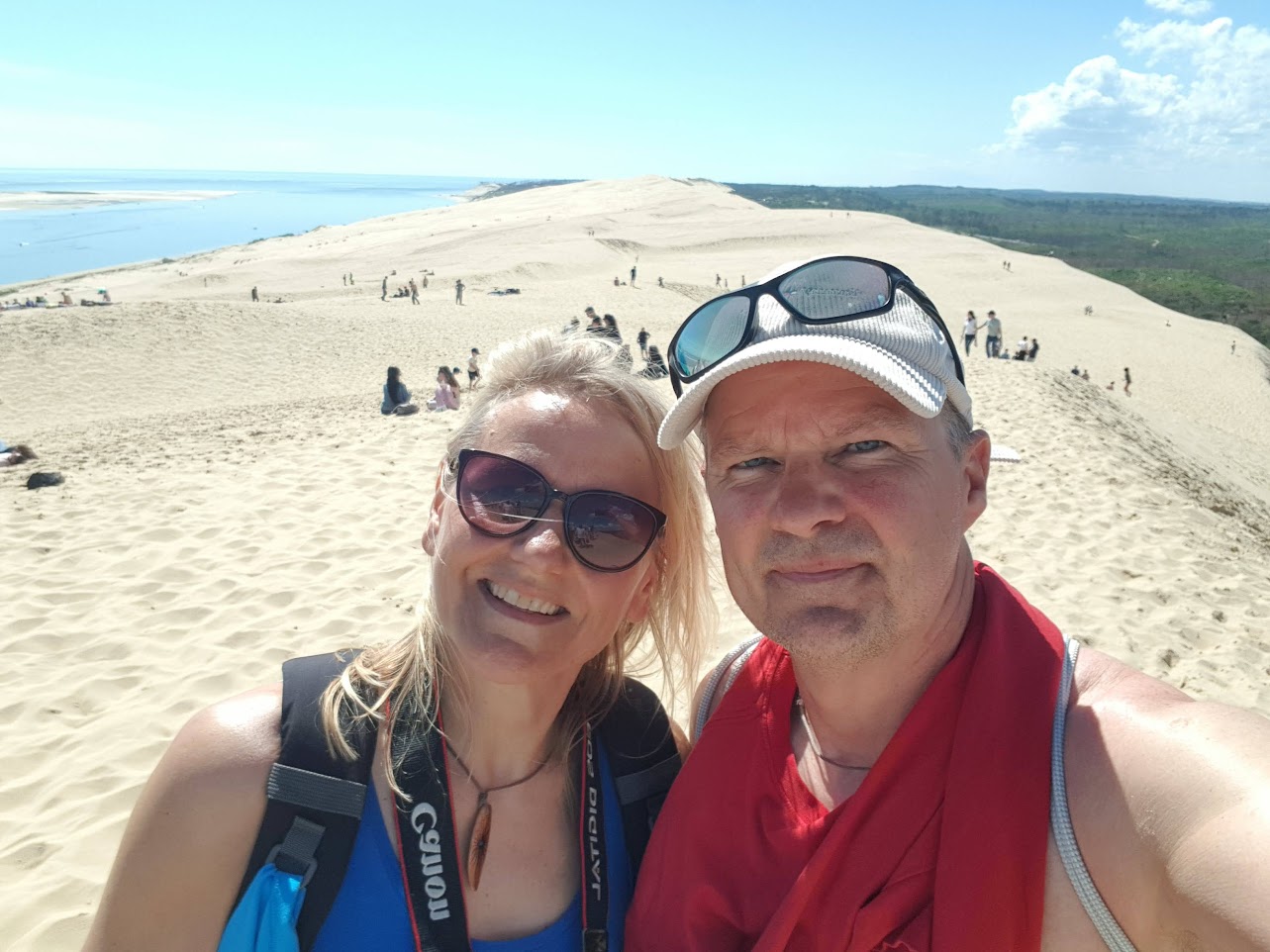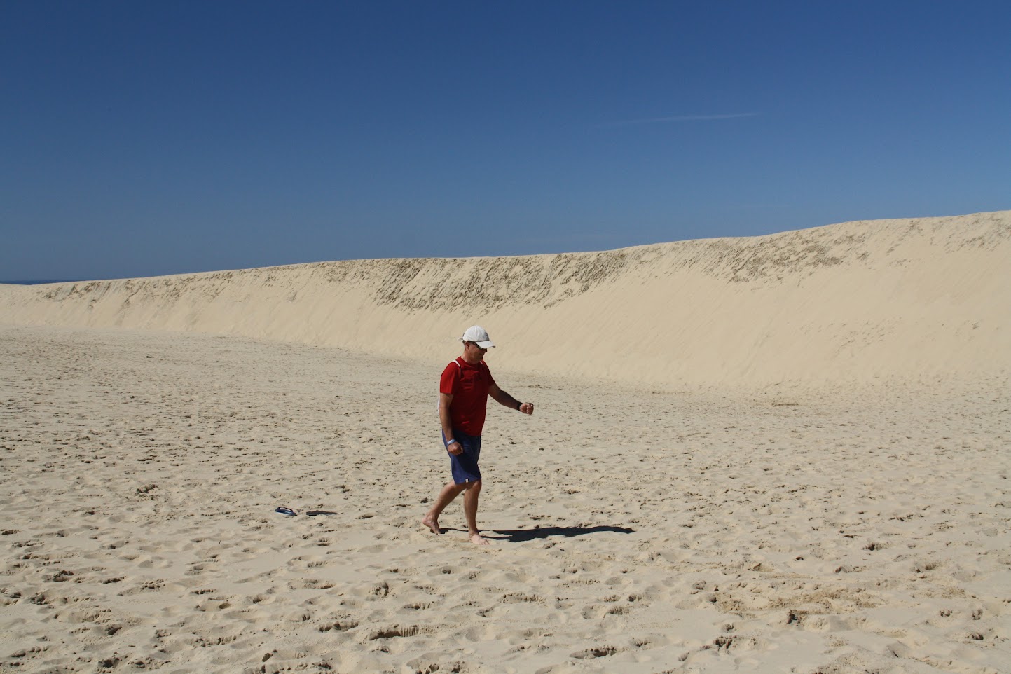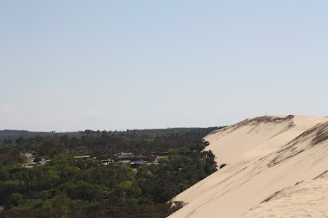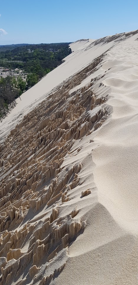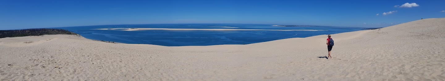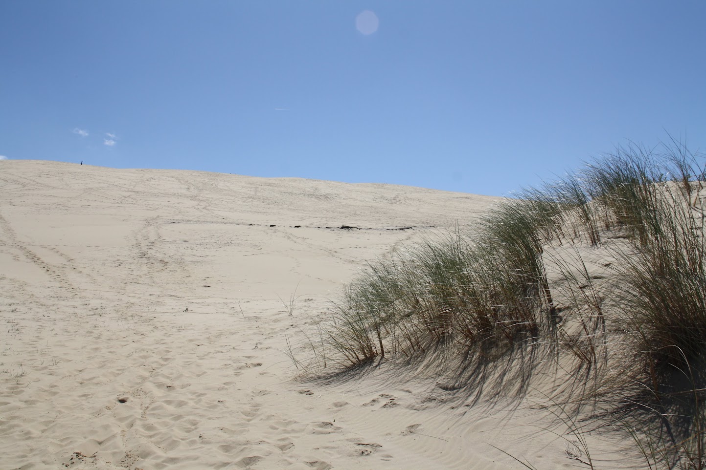 Europas höchste Wanderdüne war dann gestern unser nächstes Ziel. Sie ist ca. 2,7 km lang, zwischen 80 und 100m hoch und ca. 500m breit. Es sieht wirklich aus, als ob jemand riesige Sandberge einfach so in die Landschaft gekippt hätte. Unser Campingplatz lag direkt an der Düne. Leider gab es vor 2 Jahren im Waldgebiet vor der Düne einen Waldbrand. Eine riesige Waldfläche sowie 3 Campingplätze sind komplett abgebrannt. Inzwischen wurden die Campingplätze wieder aufgebaut und auch die Vegetation fängt ganz langsam an sich zu erholen. Unser Campingplatz wurde sozusagen mit uns eingeweiht, da wir pünktlich zur Eröffnung dort eintrafen. Allerdings verzögerten sich, wie so häufig, die Bauarbeiten ein wenig. Aber als das Sanitärgebäude kurzzeitig nicht funktionierte konnten wir kulanterweise einfach das Bad in einem nagelneuen Mobilhome nutzen. War also alles erträglich. Am Vormittag haben wir dann den Aufstieg in den "großen Sandhaufen" gewagt. Sehr beeindruckend! Wir sind ca. 2, 5 km am Strand entlang der Düne gewandert und zurück haben wir den Weg über die Düne genommen. Ein gutes Wadentraining - aber schön!