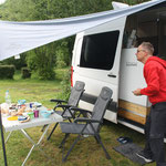Die Fahrt nach Larrau war schon sehr abenteuerlich. Es ging auf fast 1400m hoch und dann wieder runter. Dafür wurden wir mit einem einmaligen Stellplatz auf dem Campingplatz verwöhnt. Der Platz war großartig, mit ganz netten Betreibern. Bis auf ein weiteres Pärchen waren wir die einzigen Gäste. Beim Frühstück und Abendessen konnten wir von unserem Bus aus eine gigantische Aussicht auf die Berge genießen. Die Natur lag direkt vor unseren Füssen: Eine süsse Springmaus und diverse Rotkehlchen leisteten uns direkte Gesellschaft und wir konnten beobachten, wie ein Bussard direkt vor unseren Augen seine Beute jagte. Spannender als jeder Krimi.